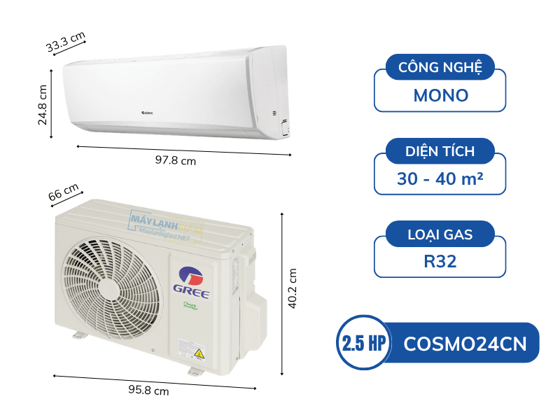 Máy lạnh Gree Mono COSMO24CN 2.5HP 2024 – Làm mát tối đa, vận hành bền bỉ, thiết kế thanh lịch cho không gian lớn